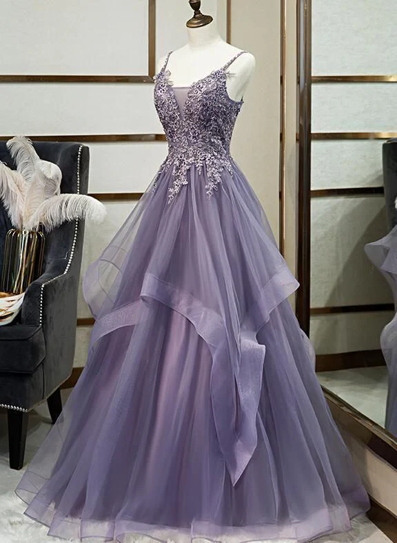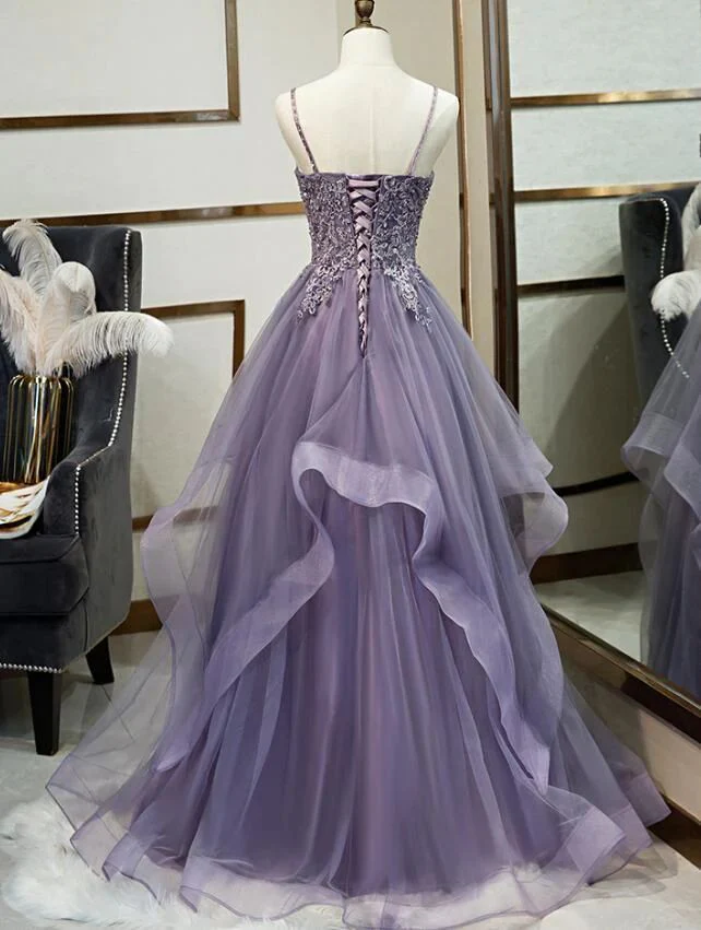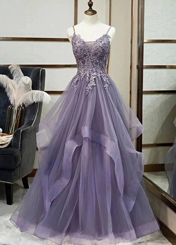 Spaghettibandjes met ruches en kanten top van tule maxi-galajurk