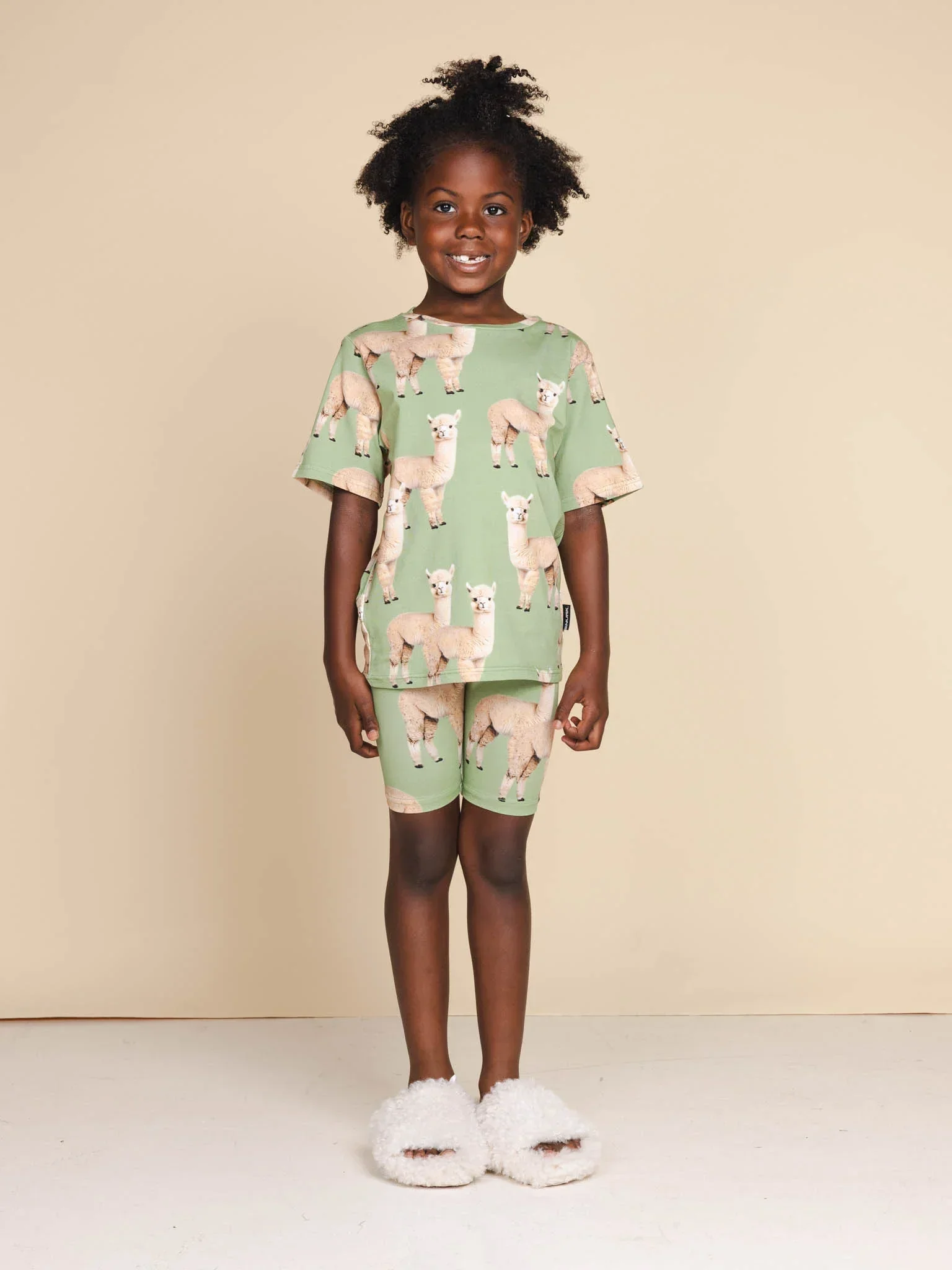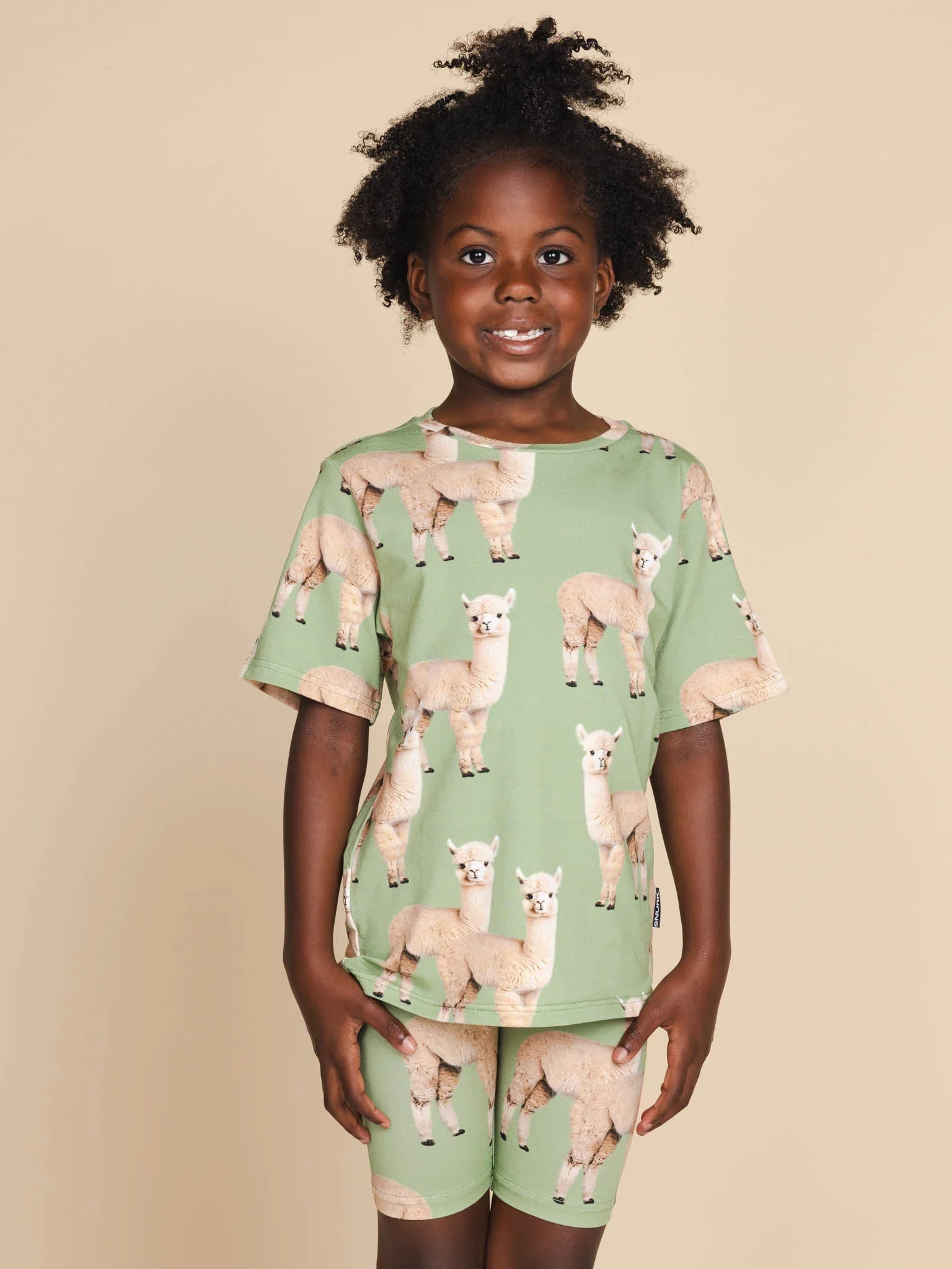 Kids t-shirt en bikershorts met fotoprint gemaakt van 95% biologisch katoen, 5% elastaan