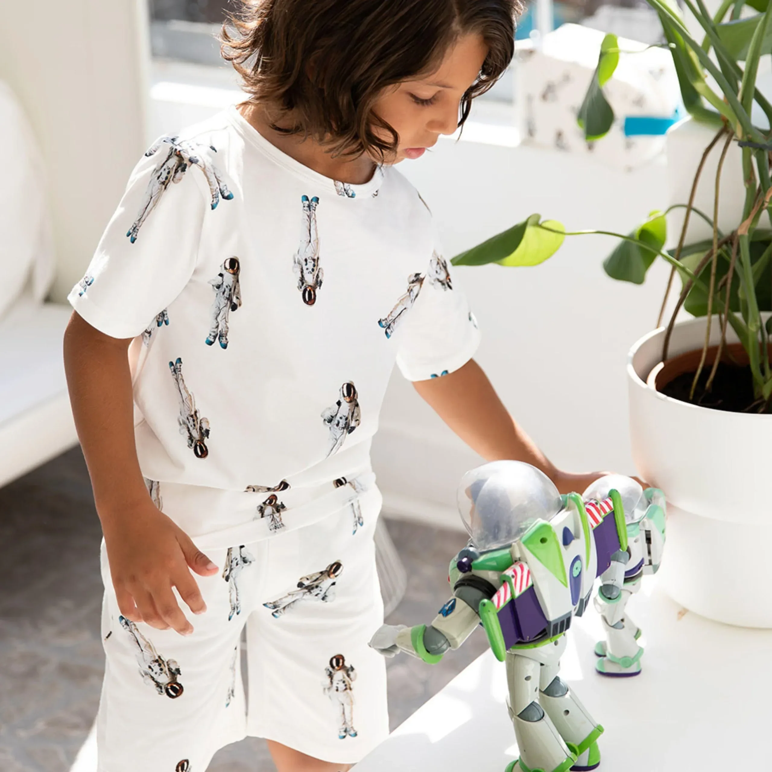 Twee miljoen lichtjaren verder is het dan zover. Onze Astronaut staat nu ook op onze kleding. Voel de zwaartekracht afnemen. Houston, we have lift off!