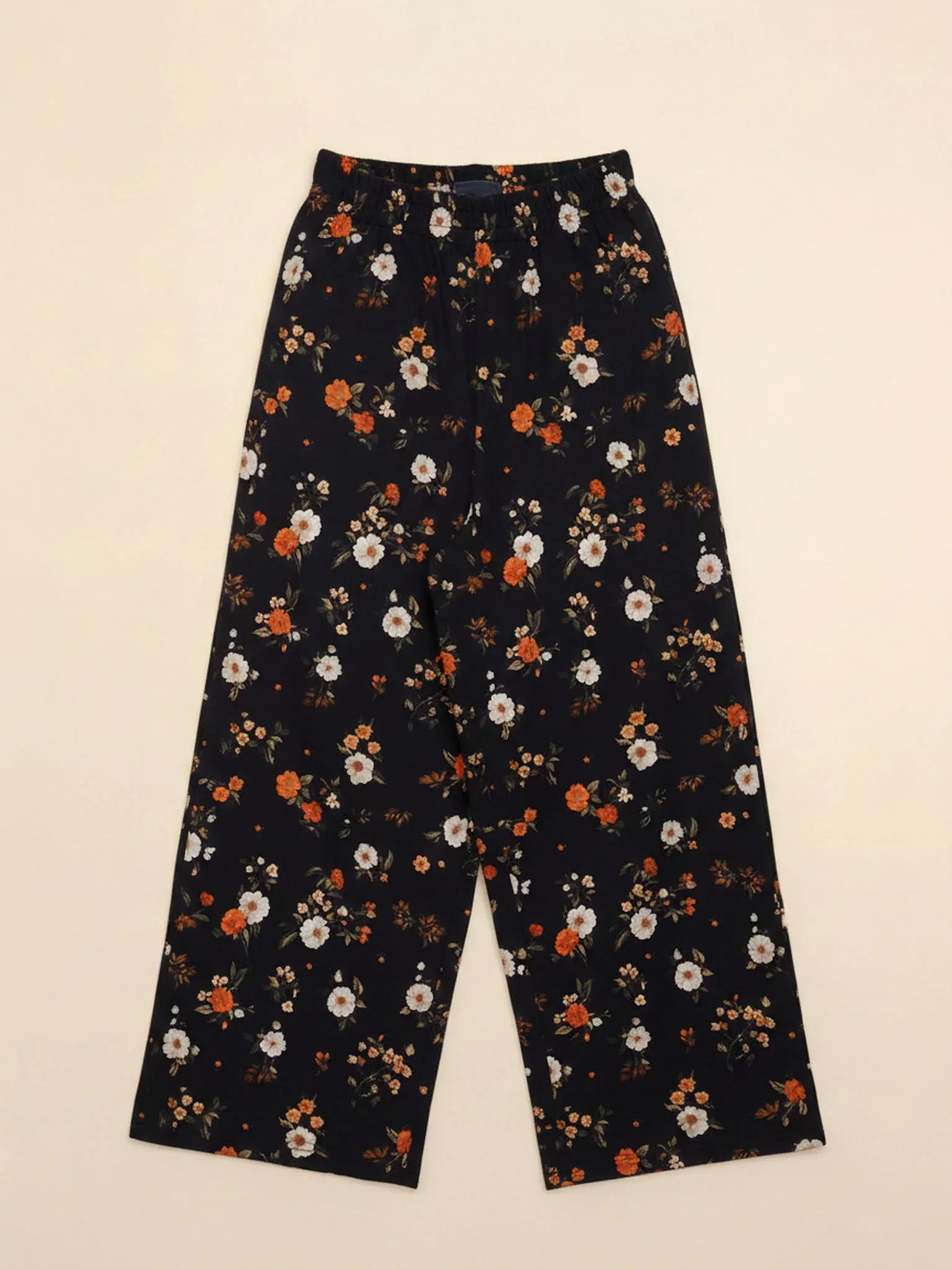 Wijde broek voor dames met fotoprint gemaakt van 95% biologisch katoen, 5% elastaan.