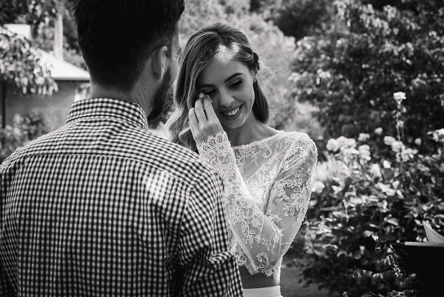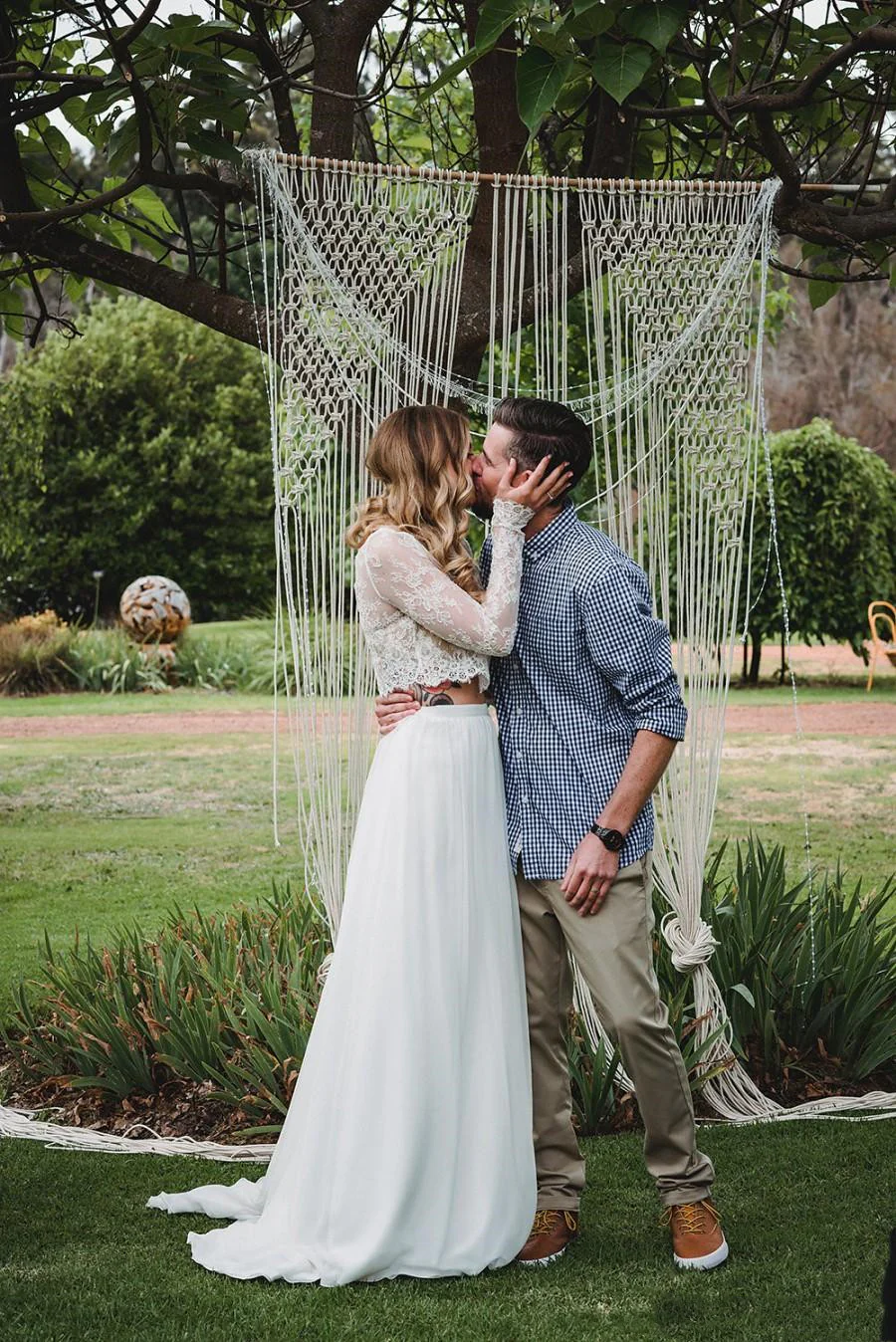 Casual kanten top met lange mouwen, Boho Chiffon tweedelige trouwjurk.