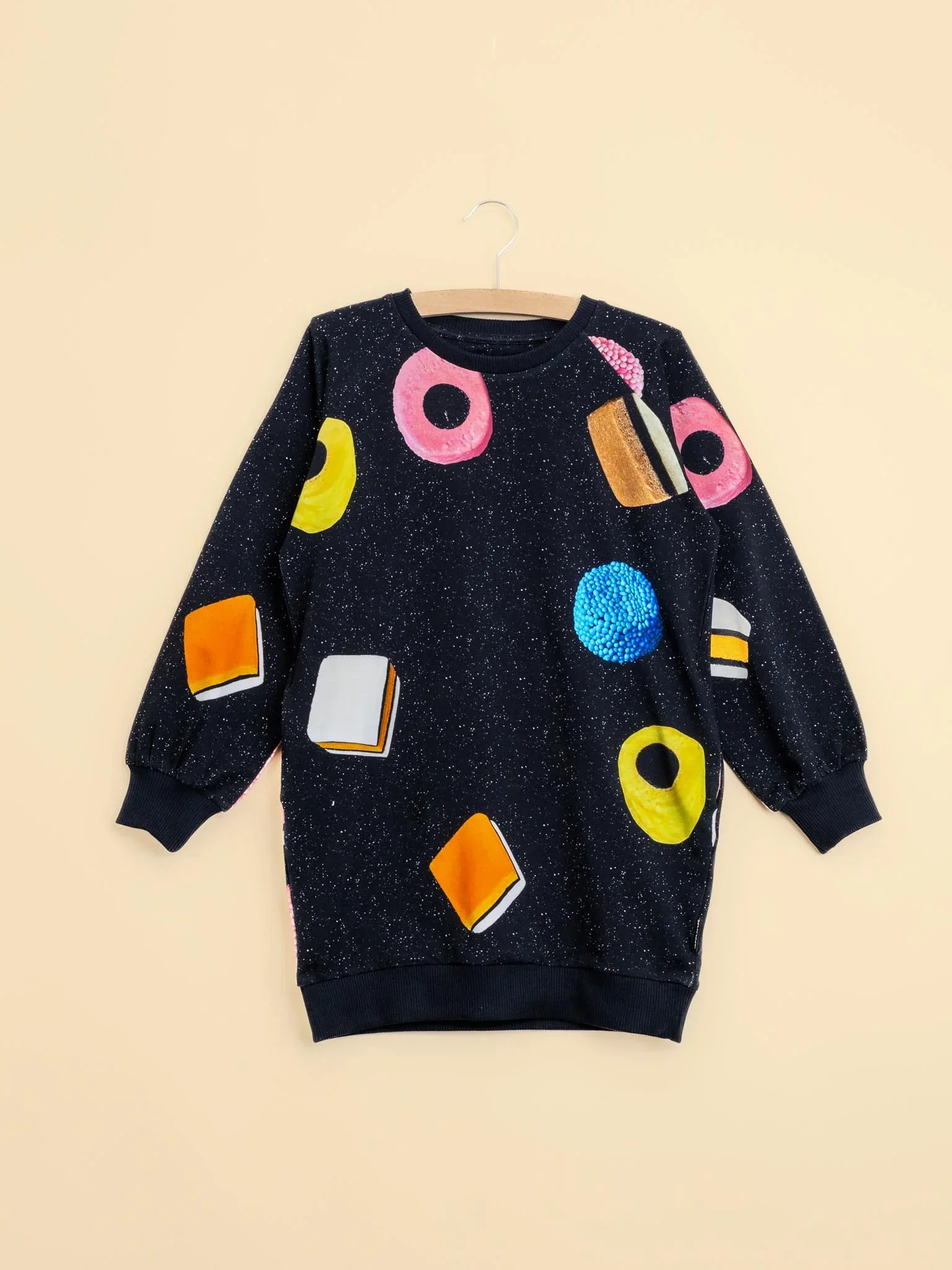 Kids sweater dress met fotoprint gemaakt van 95% biologisch katoen, 5% elastaan.