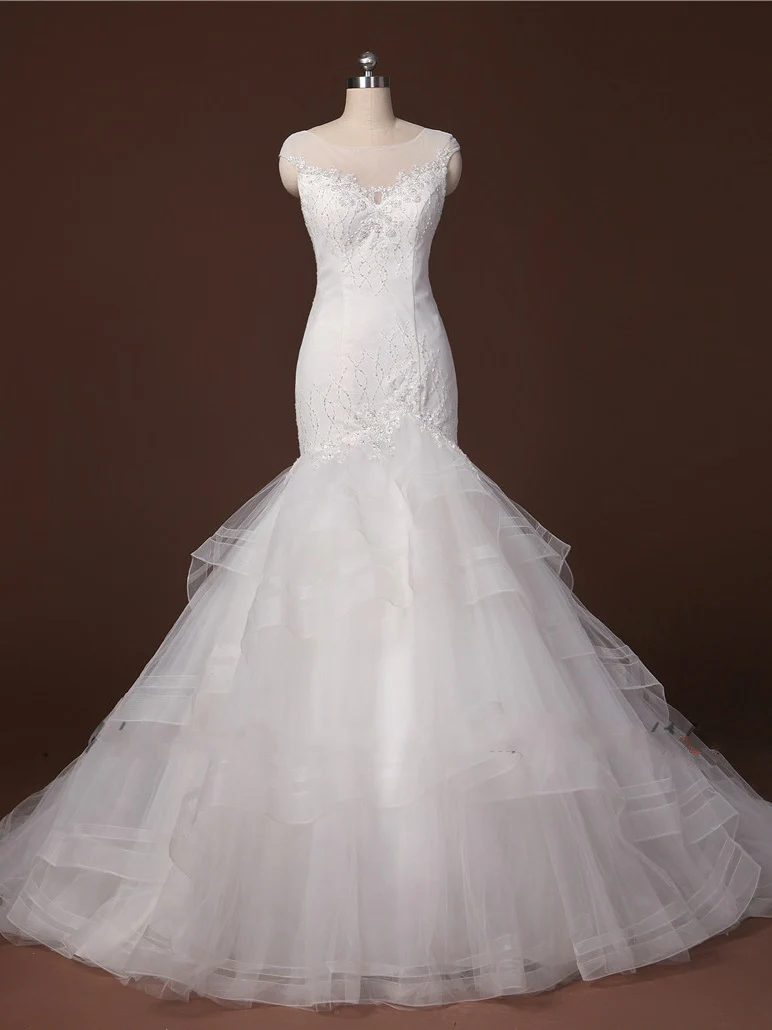 Backless prinses kant vermoeide rok zeemeermin trouwjurk.