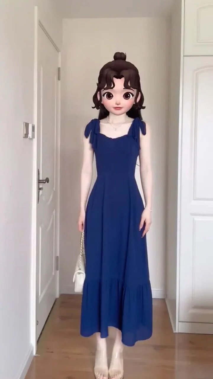 Koningsblauwe chiffon theelengte zomerjurk