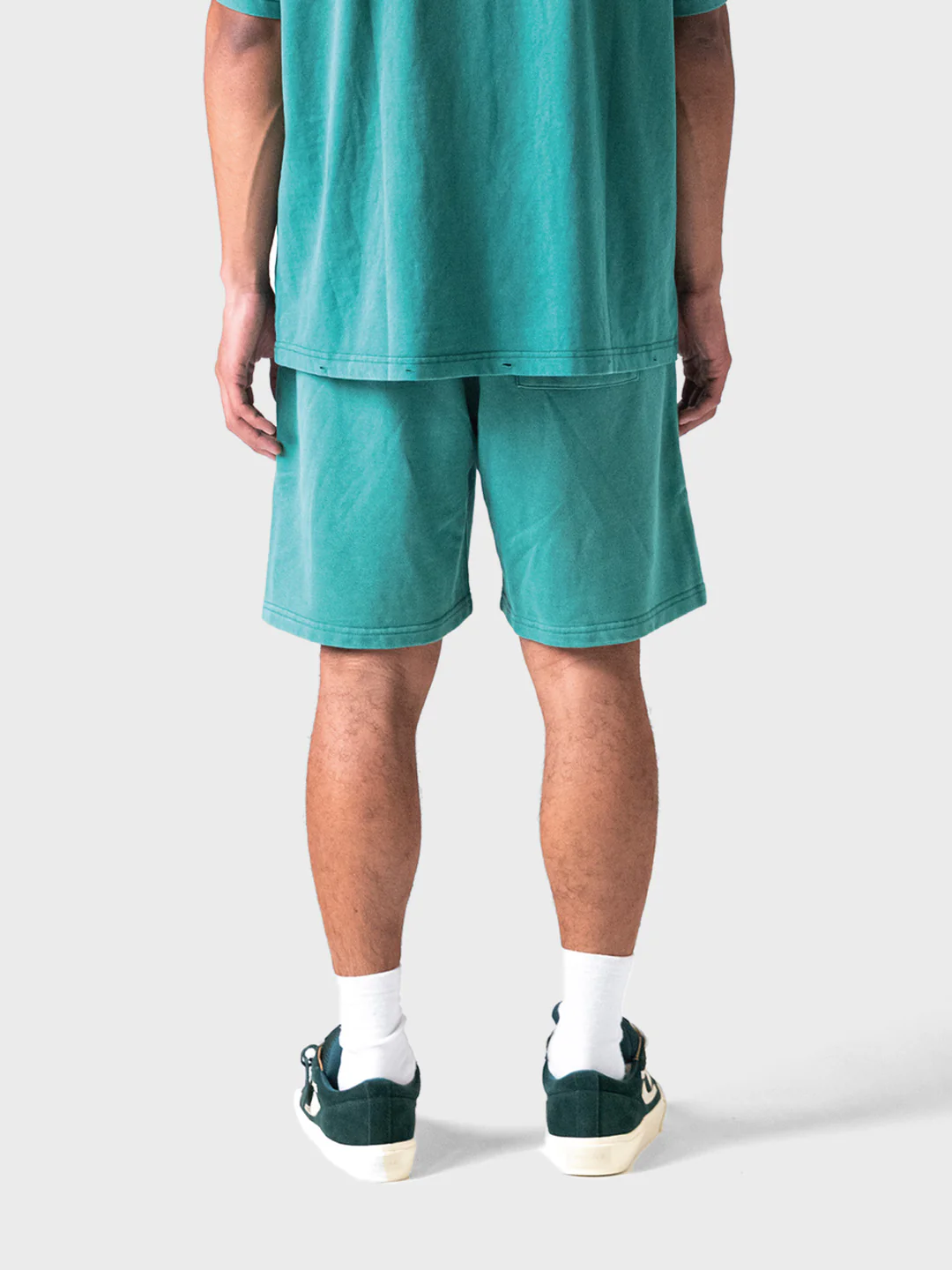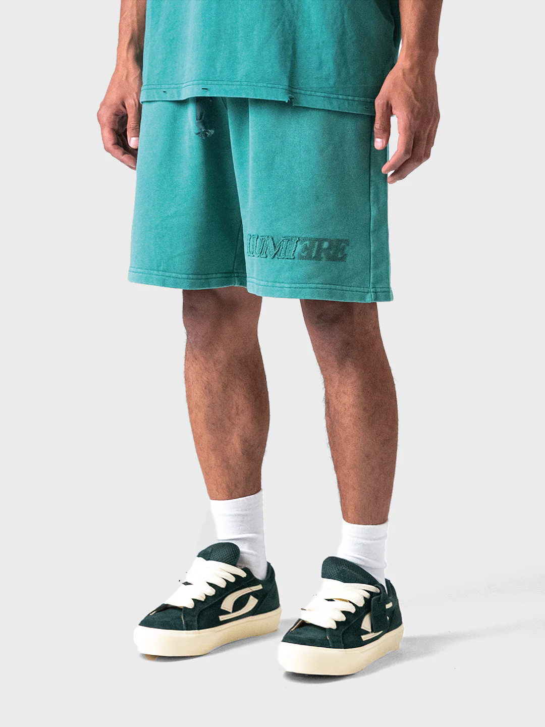 Deze shorts zijn praktisch en stijlvol. De Fade Logo Shorts van Lumi3re in gewassen groen heeft een regular fit met verstelbare tailleband. De lichte faded look maakt deze korte broek ideaal voor relaxte zomer outfits, vooral in combinatie met het bijpassende T-shirt.