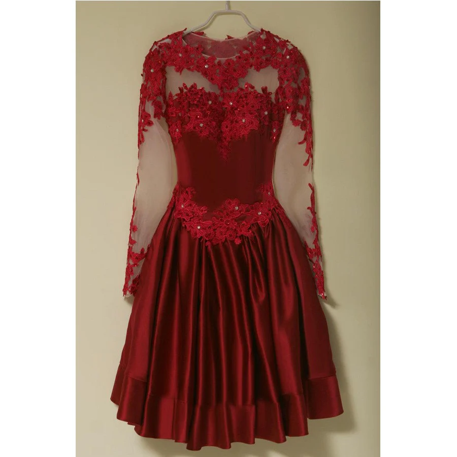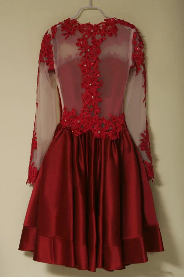 Homecoming-jurk met lange mouwen en rode kanten applicaties