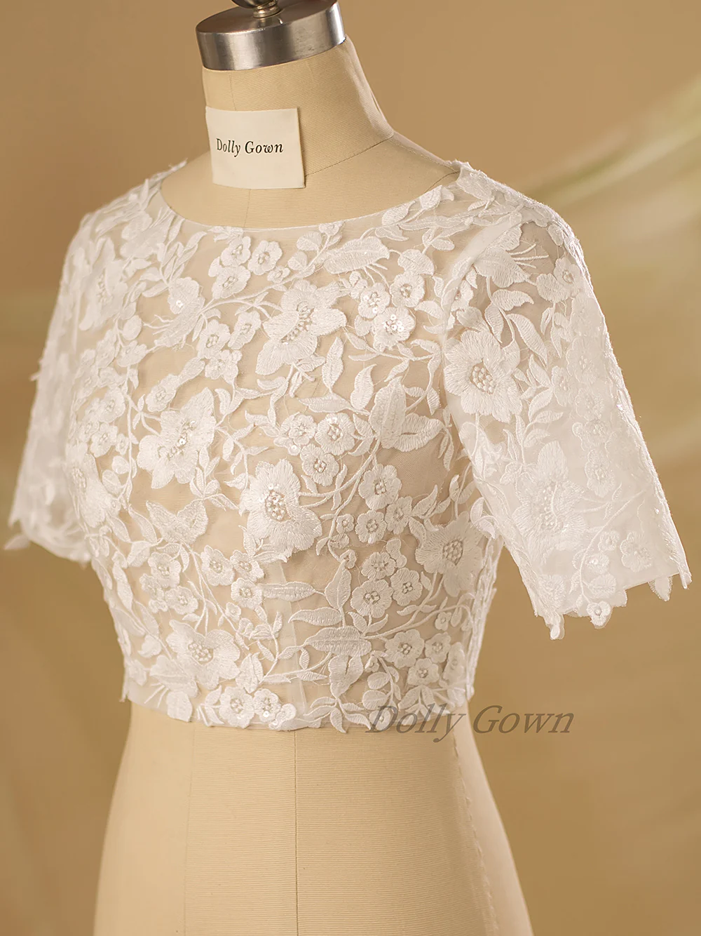 Half Sleeves Open Back Lace Bridal Cover Ups