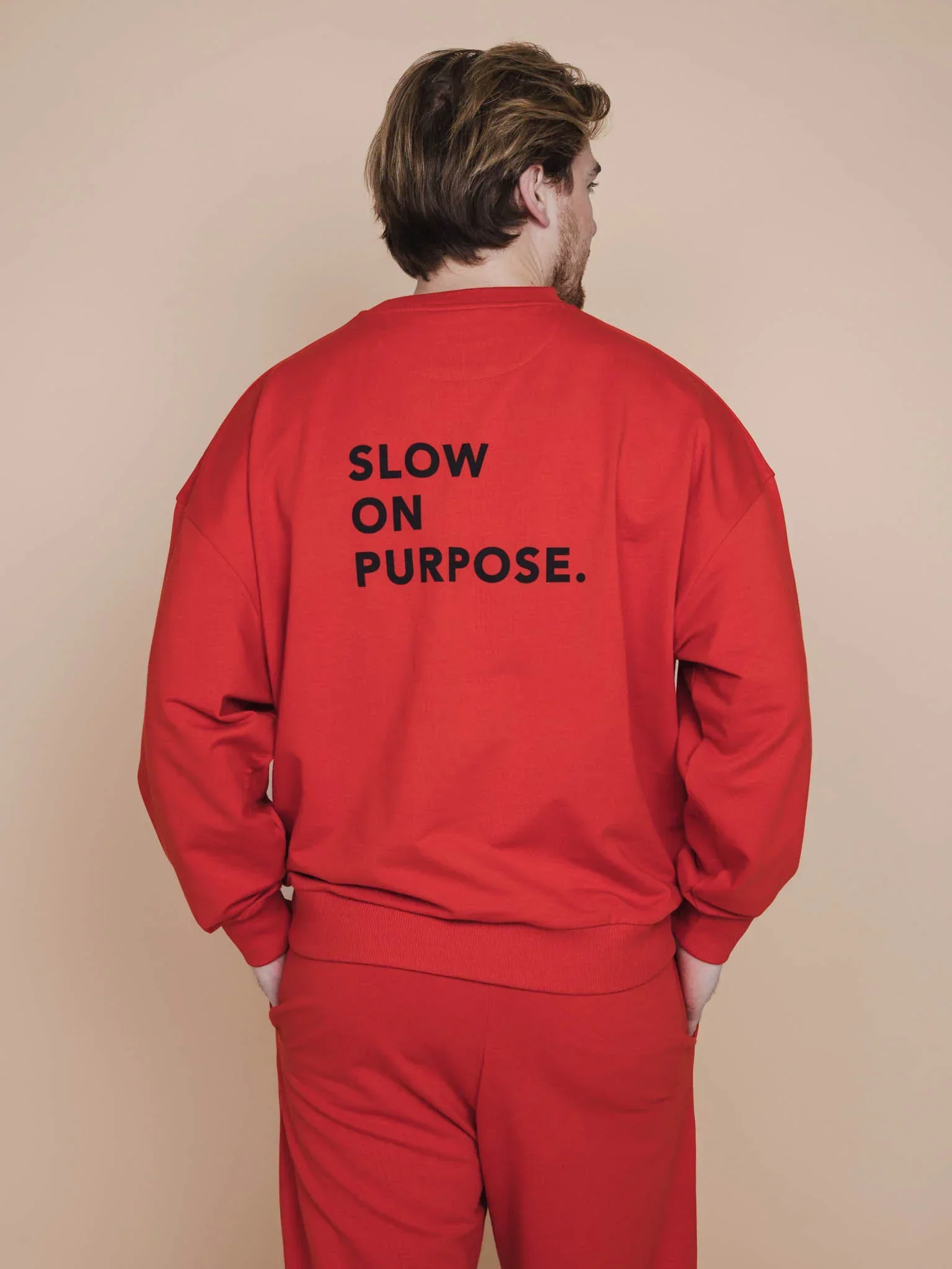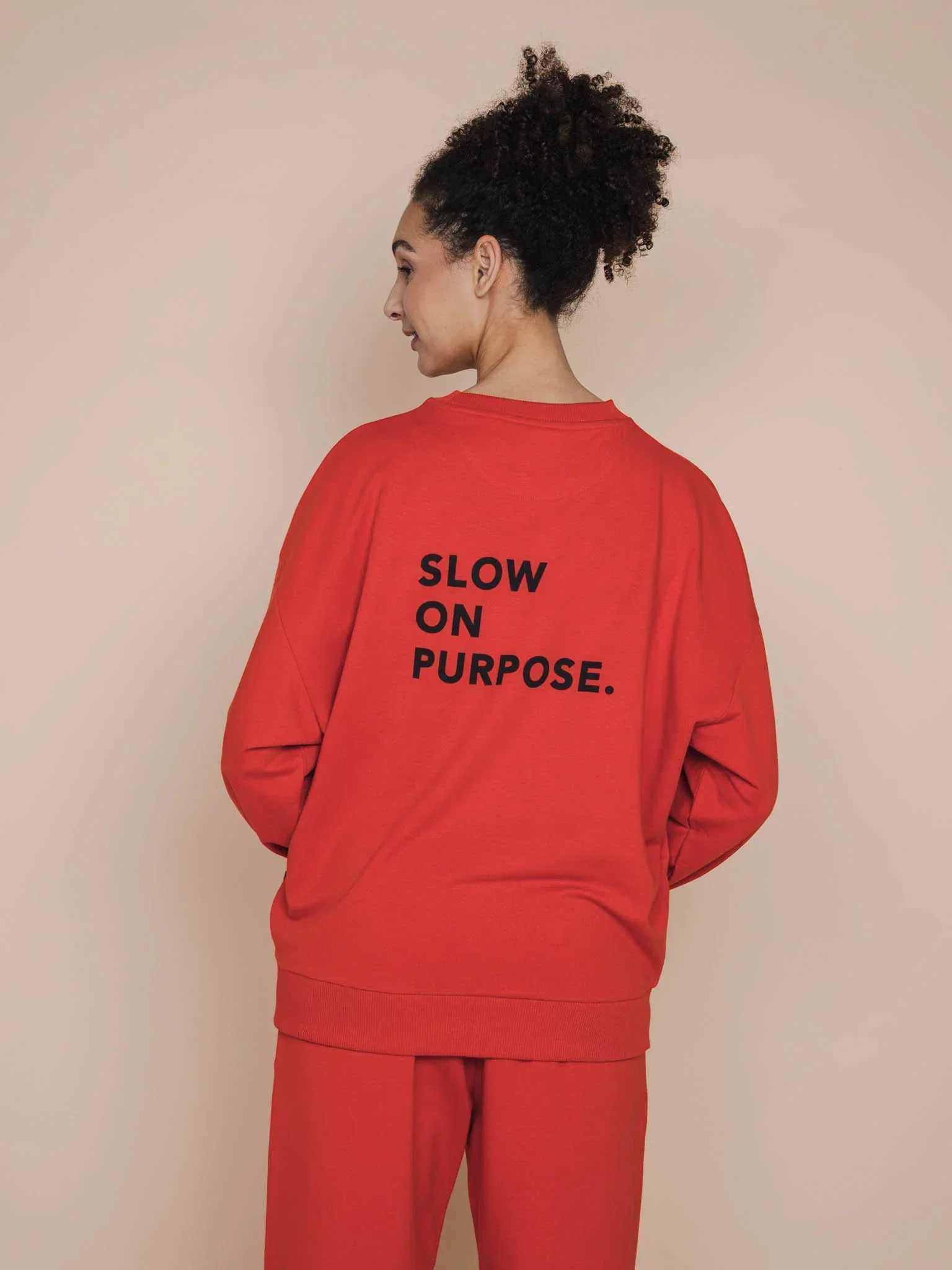 Ruimvallende unisex sweater gemaakt van 95% biologisch katoen, 5% elastaan.