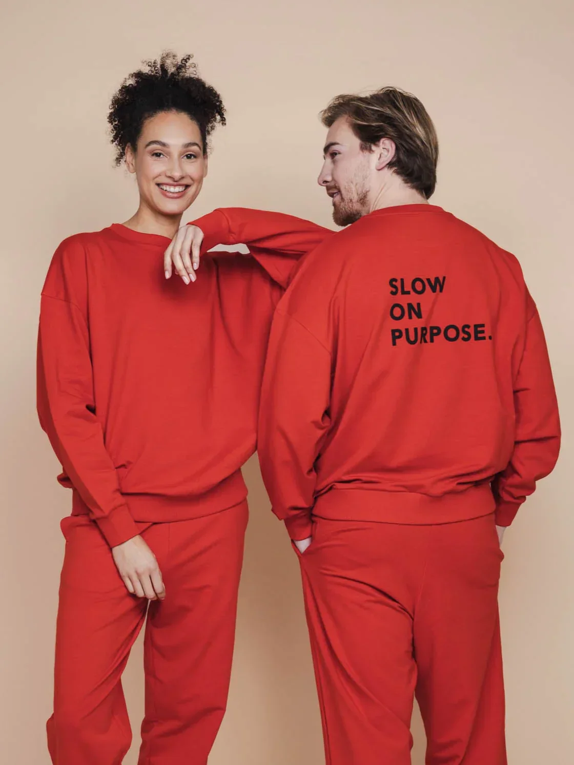 Ons model Cherisa draagt een maat XS/S en Servaas draagt een maat M/L.