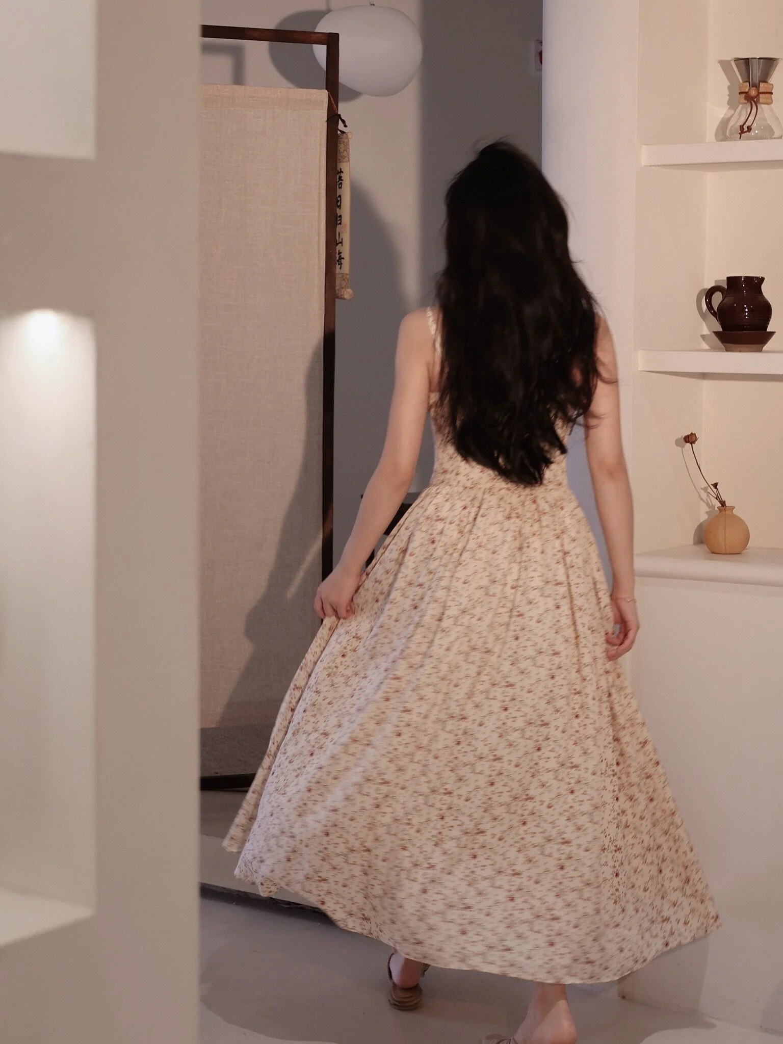 Vintage geïnspireerde spaghettibandjes zomer bloemen swingjurk