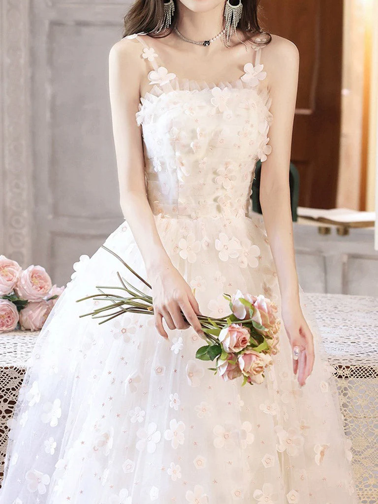 Sweet White Flower A-line Flora Wedding Dress