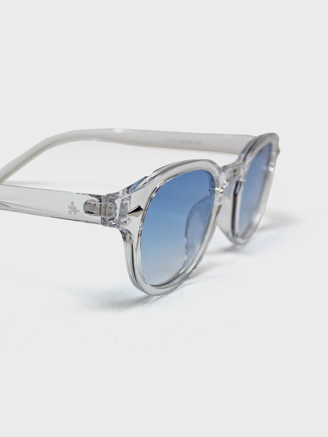 Ontdek de Shades by Ricks Vue Élégante van The Missing Piece. Dit model is small, rond en puur finesse. Deze zonnebril ademt throwback cool met een moderne twist. Dankzij de subtiele puzzle piece-branding, doorzichtig frame, blauwe glazen en minimalistische look voeg je moeiteloos klasse toe aan je street- of zomerfit.