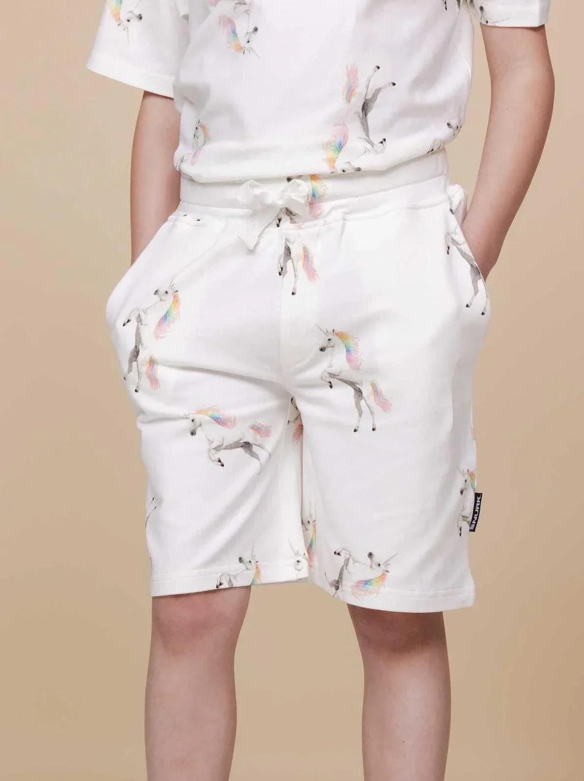 Kids shorts met fotoprint gemaakt van 95% biologisch katoen, 5% elastaan.