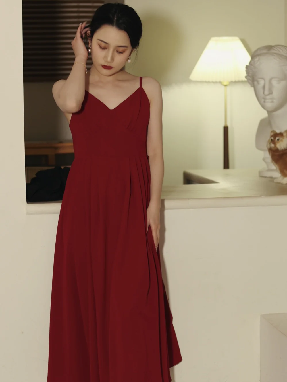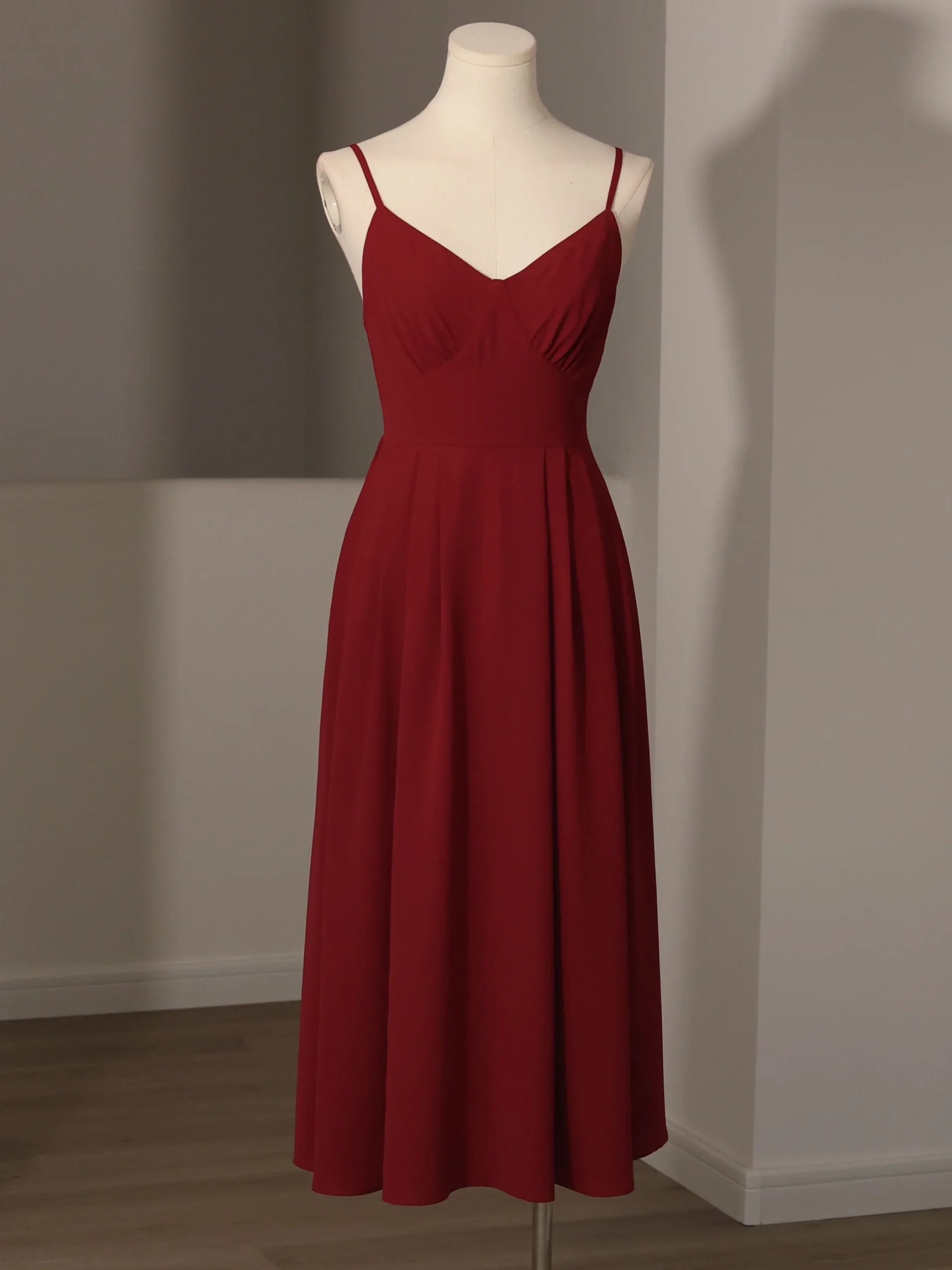 A-lijn bordeaux zomerjurk met saghettibandjes