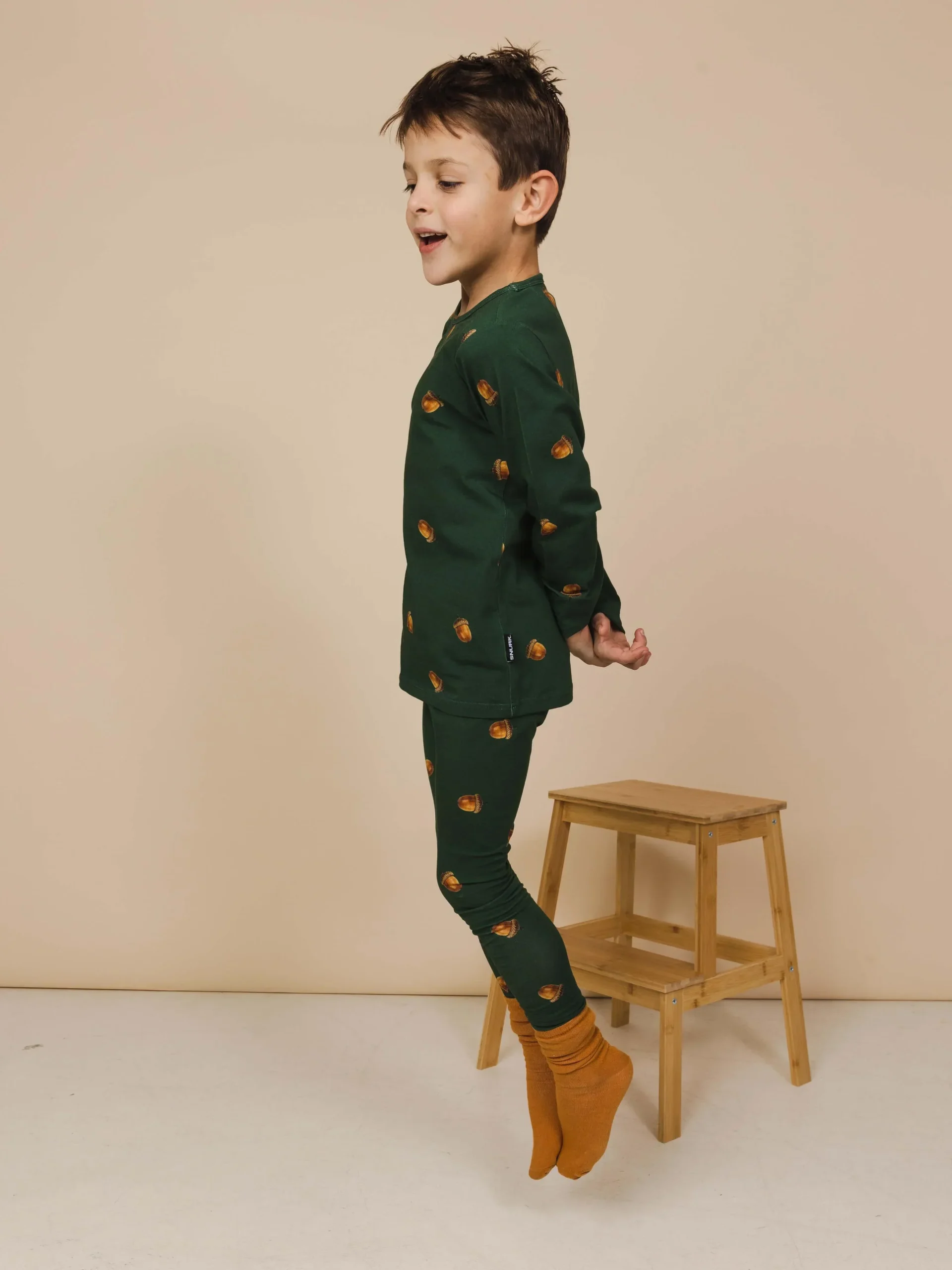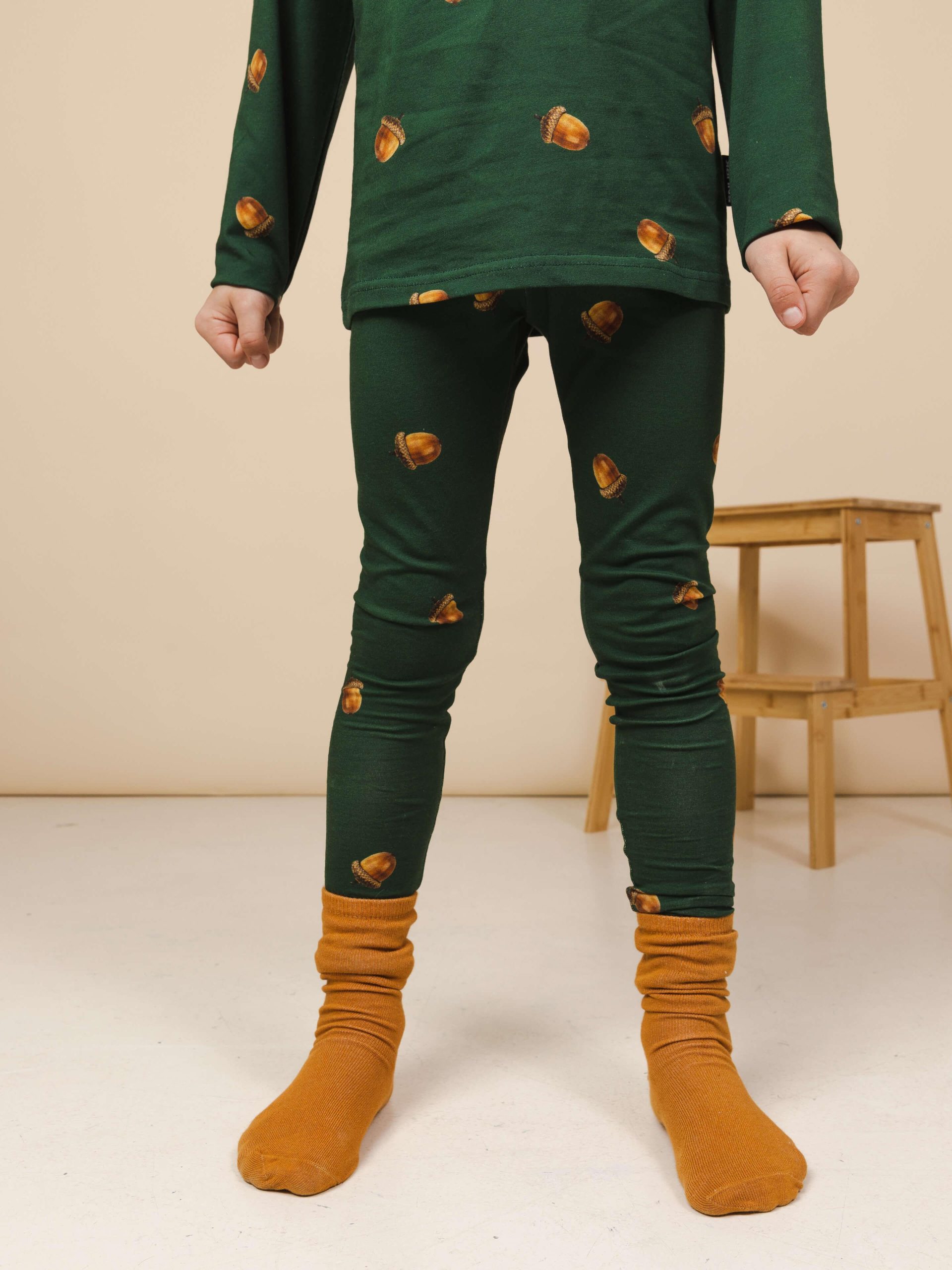 Wie kan zich onze eerste eikeltjes pyjama nog herinneren? (Jesse Klaver iig wel! ;-)) Dit seizoen maakt deze leuke print een comeback in onze collectie, dit keer in diepgroen.